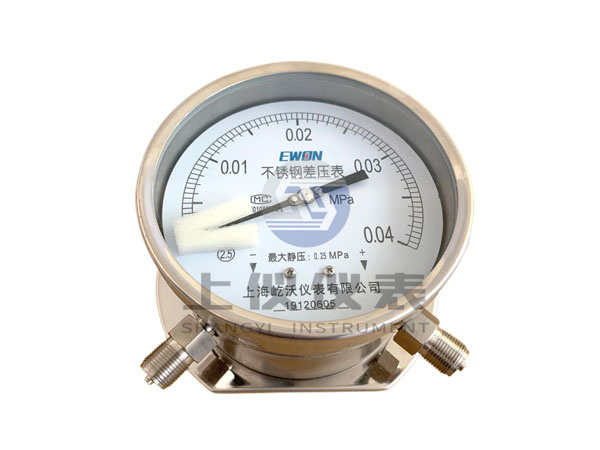 文字表述:上仪全不锈钢平行后带边差压表,测量范围0-0.25MPa,螺纹标准为M20×1.5,**静压1.6MPa